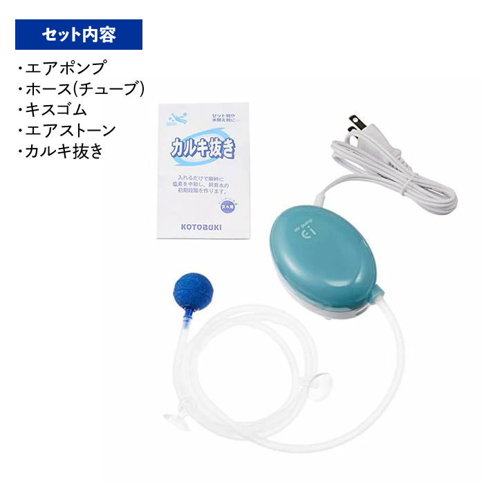 エアポンプ、エアチューブ(エアホース)、キスゴム、エアーストーン、カルキ抜きのセット。