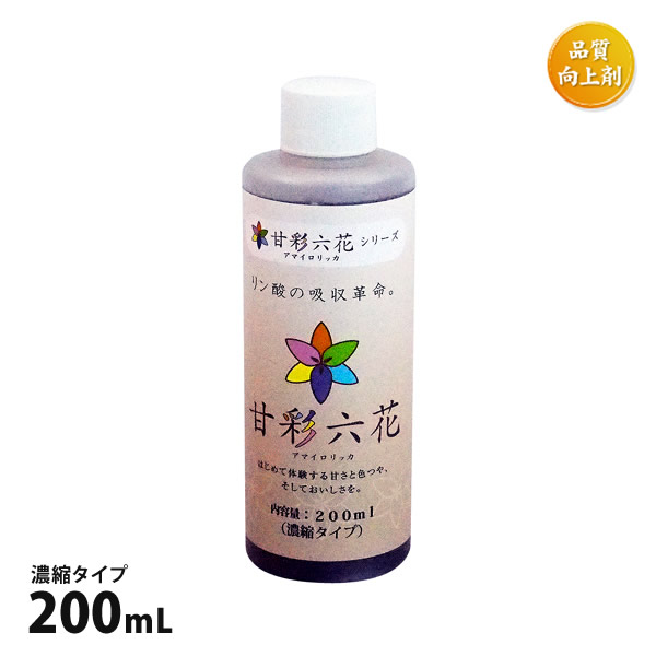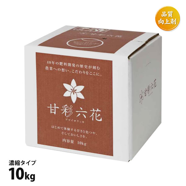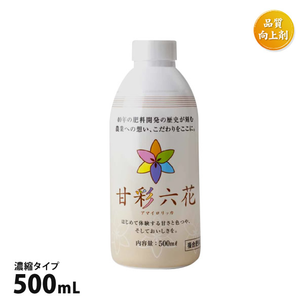 | 特長 | ・作物内の硝酸値が大幅に減少します。 ・葉を早く大きく育てます。 ・作物の食味と色艶が圧倒的に向上します。 ・生殖生長と栄養成長が同時に促進されます。 ・甘彩六花は、特殊酵素の働きで作物内の硝酸値を減少させながら、作物の品質と収量を向上させることができる肥料です。 ・生殖生長と栄養成長を同時に促進させるので、実をたくさん成らせながら葉や茎がどんどん大きくなります。同時に糖の生成も促進されるので、作物の食味が圧倒的に向上します。 |
