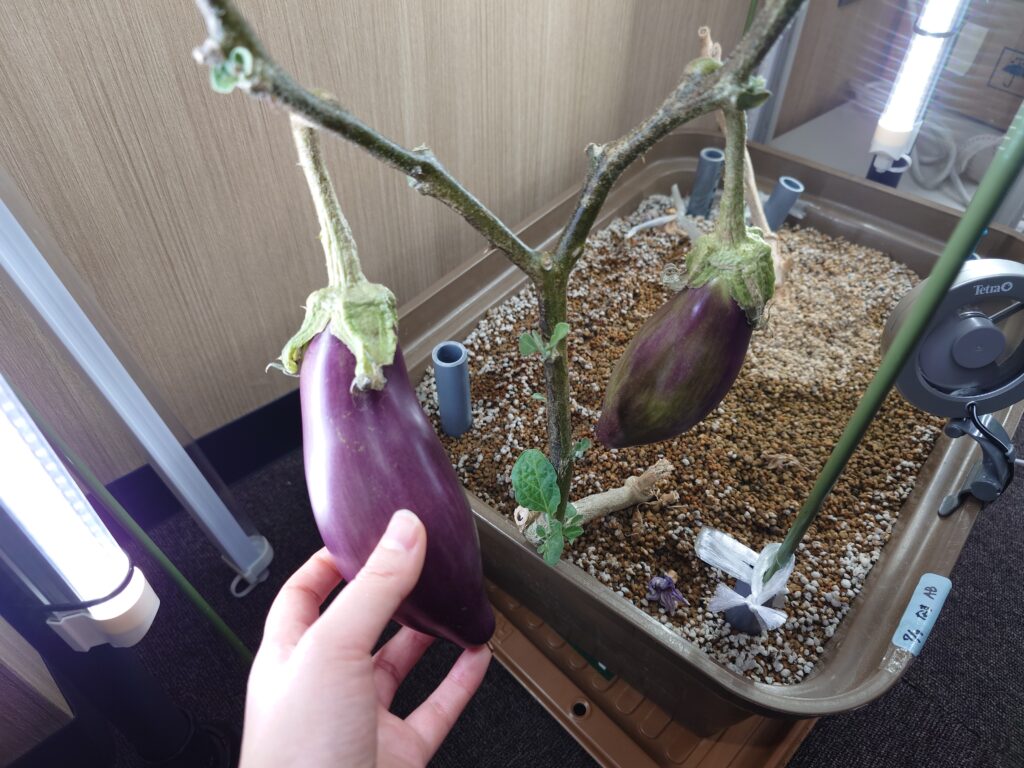 2025年の7月7日に水耕栽培キットに種まきしたナスですが、半年間で10本~15本の収穫ができました。(ちゃんと数えていなかった笑)私自身初めての栽培だったこともあり、もっと収量を増やす栽培ができたらよかったな~とは思うのですが、楽しみながらできたことと、1人で消費するにはちょうどいいスピード感で収穫できたのでよかったです。