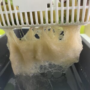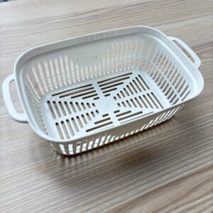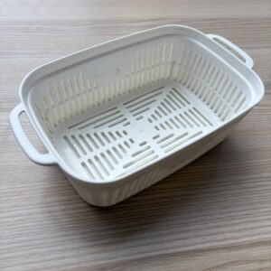 今回使用する容器は、ダイソーで購入した豆苗プランターです。上が網目になっており、下が水が入るような容器になっています。今回は、上の網目の部分のみ使います。