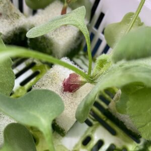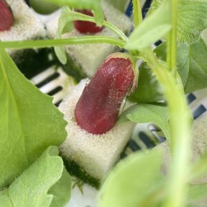 さらに1週間後、ラディッシュらしい形になってきました。スポンジに圧力がかかっているわけではないのにちゃんと実が太っていくのはすごいと感じます。