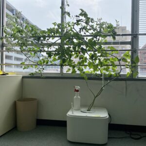 エコゲリラの事務所は直射日光の入る大きな窓があり、ミニトマトは毎年そこで栽培をしています。よく、観葉植物の置き場所として、カーテン越しの窓際に置くというものが多いと思いますが、お野菜の場合は、これでは光量が足りません。「明るい窓際」ではなく、「直射日光の入る窓際」である必要があります。