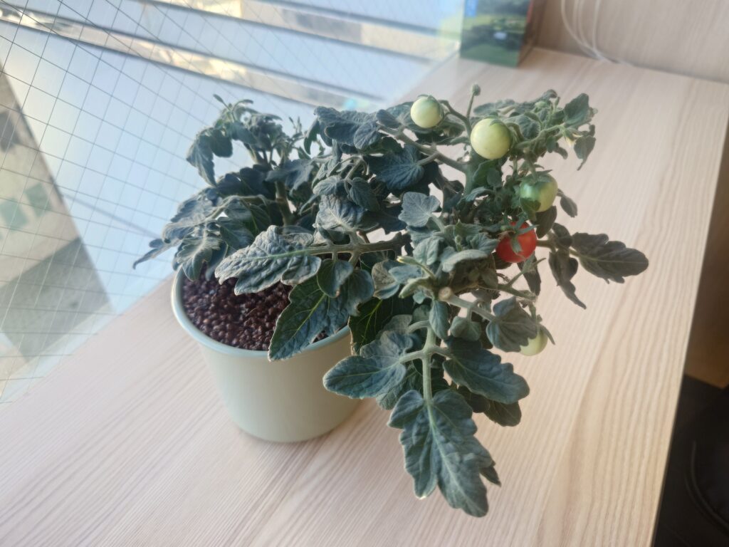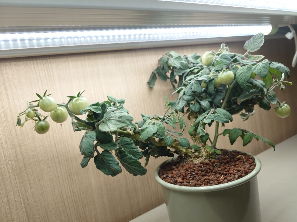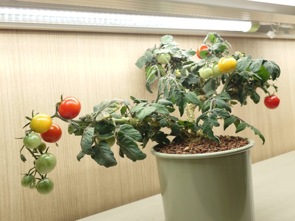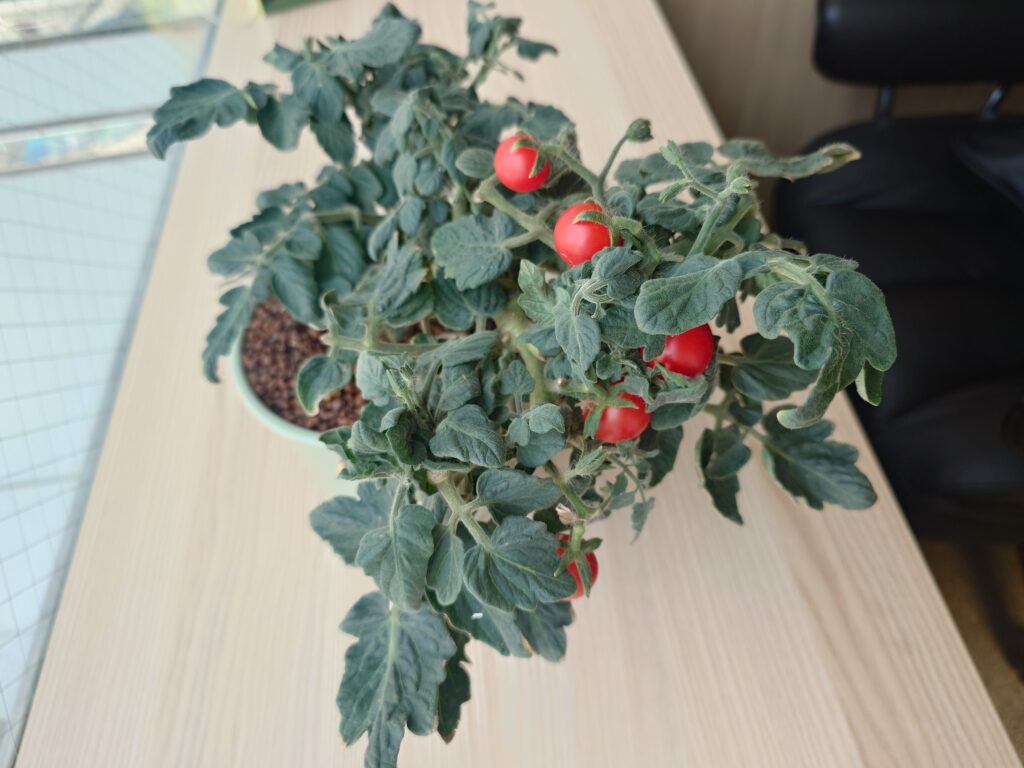 育てた品種は、卓上サイズで育つ品種なので、お手軽に可愛いミニトマトが栽培できますよ。お部屋に「観葉植物」ならぬ「観葉野菜」を育てるきっかけになると嬉しいです。