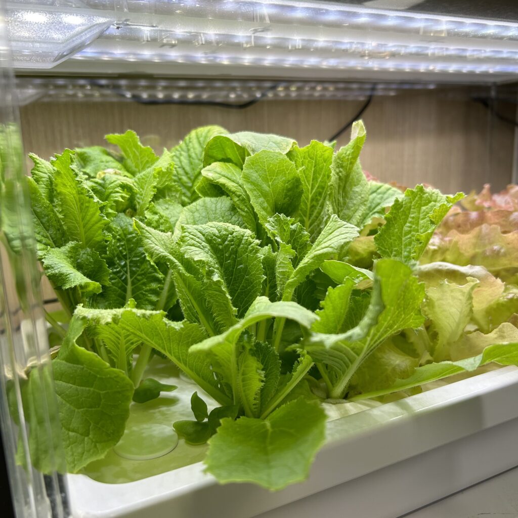 おやさいライトを使った水耕栽培で育つ野菜たち