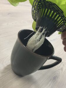 根っこが窮屈なのは、植物にとってもよくないので、2Lのペットボトルへお引越し。ペットボトルの上部分をカットして、移し替えました。