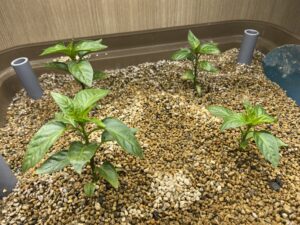 間引いた苗は捨ててもいいのですが、どうしてももったいない精神が働き、別の容器でハイドロボールで育てることにしました。