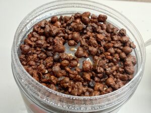 自作のキットは、容器はIKEAで購入した陶器製のポットにハイドロボールを入れているだけです。肥料は、「おうちのやさい1液タイプ」です。