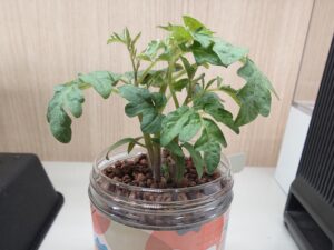 育てた品種は、卓上サイズで育つ品種なので、お手軽に可愛いミニトマトが栽培できますよ。お部屋に「観葉植物」ならぬ「観葉野菜」を育てるきっかけになると嬉しいです。