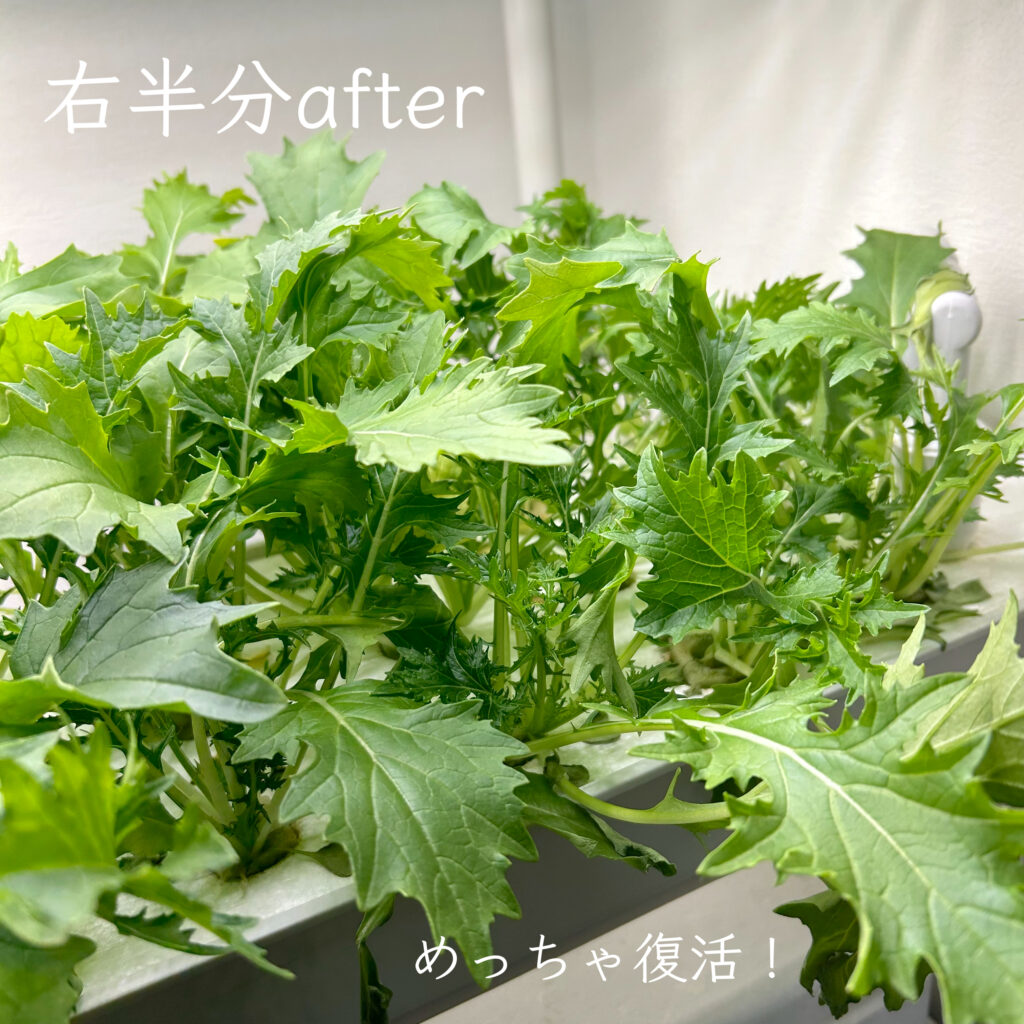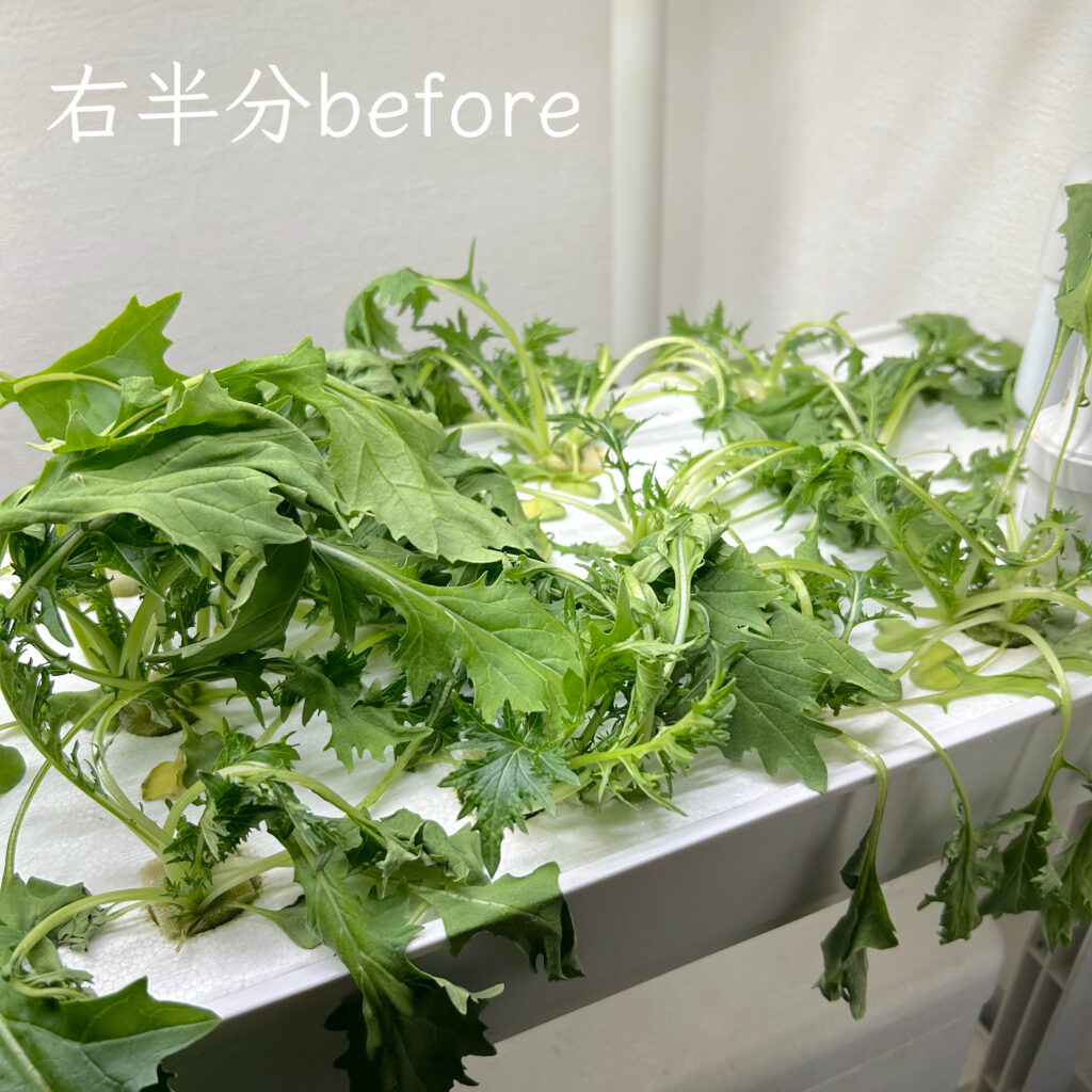 また、成長に伴って間引きを行うことで、残った水菜がより大きく育ちます。間引きをすることで、葉が密集しすぎるのを防ぎ、風通しの良い環境を保つことができます。人も過度な密集だとストレスかかるのと一緒です!